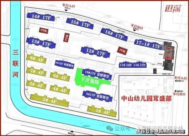 上海松江中铁建·西派云间售楼处电话☎:400-8818-994(预约看房热线)地面未见停车位,人车分流,但人行出入口的位置未标注。小区北侧和东侧的车行出口和入口分开,南侧也设置有机动车出入口。