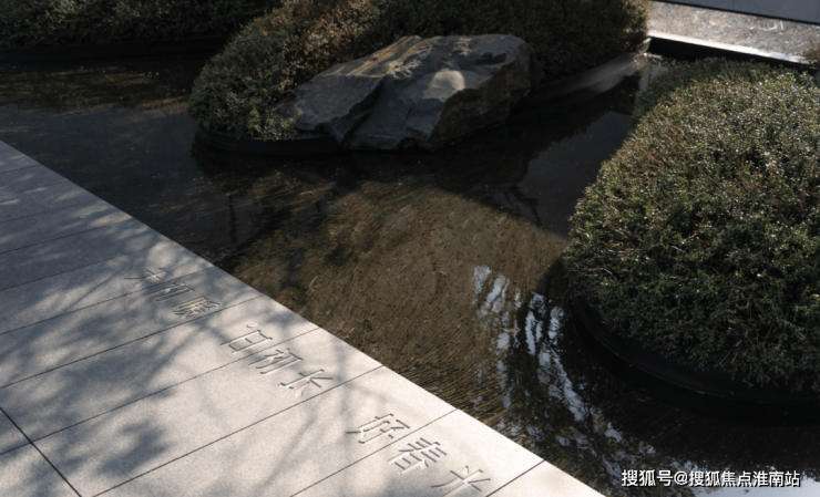 第一幅通过景墙的框景,使人们的注意力集中在中心的景观上,一松,一石,一池水便是画卷,文石水墨、无边静水,寓山于水,一静一动,动静之间又有无限深意,如《姑苏繁华图》中的一处缩影,松石相望,流水相伴;入口设置了三步台阶寓意:云接三级,步步高升,此外营造了两幅长卷画面。