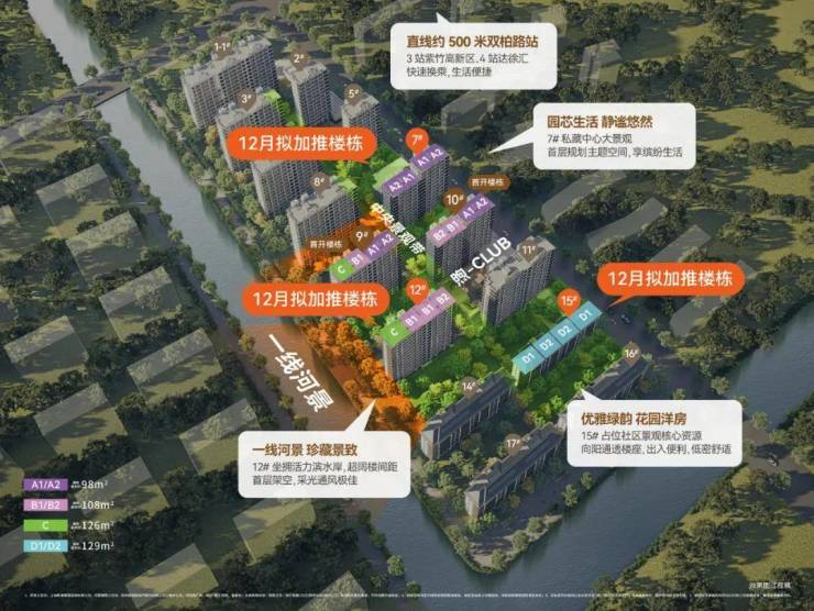 1、加推即王炸:占据社区C 位视野,绝版临河景观资产