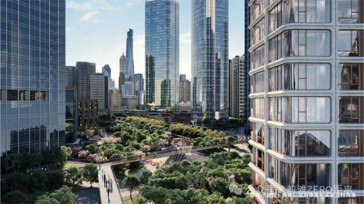 项目占据北外滩核心区一块规整且相对充裕的地块,这使绿城有空间跳出“向下拓展”的常规思路,转而将景观资源向空中延伸,打造“地面+空中+局部下沉”的三重立体游园体系。