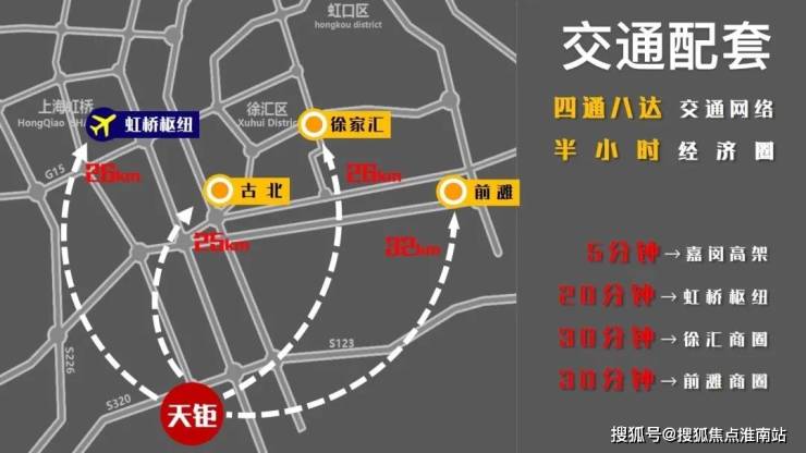 自驾方面主要是项目旁边边的剑川路, 申嘉湖高速(40分钟直通浦东国际机场),虹梅南路高架(30分钟连接市中心)、沪金高速、沪闵路、嘉闵高架(25分钟直达虹桥交通枢纽)。