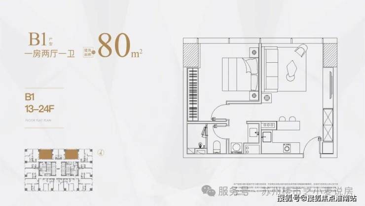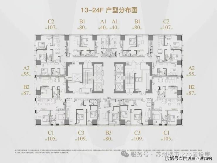 低区13-24层,户型分别是 40㎡,55㎡,80㎡,107㎡;