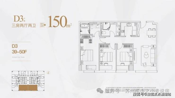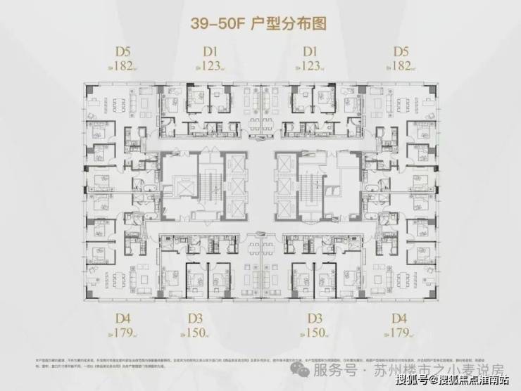 高区为39-50层,户型分别是 125㎡,150㎡,180㎡。