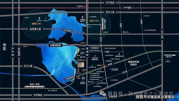 交通上:近轨交2号线月亮湾站还有8号线松涛街站,自驾的话周边有独墅湖隧道、中环快速路等;