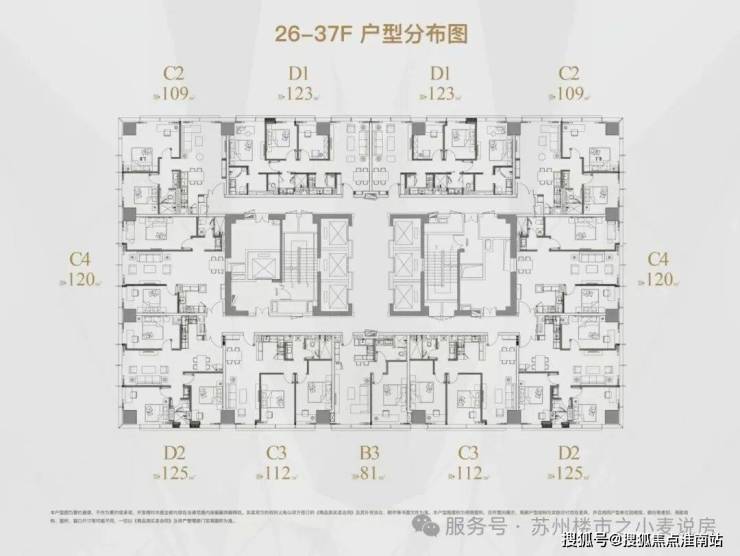 中区是26-37层,户型分别是 80㎡,107㎡,120㎡,125㎡;