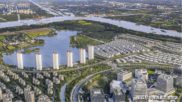 绿地景观沿黄浦江和兰香湖沿岸生长形成有序又自然的生态景观。