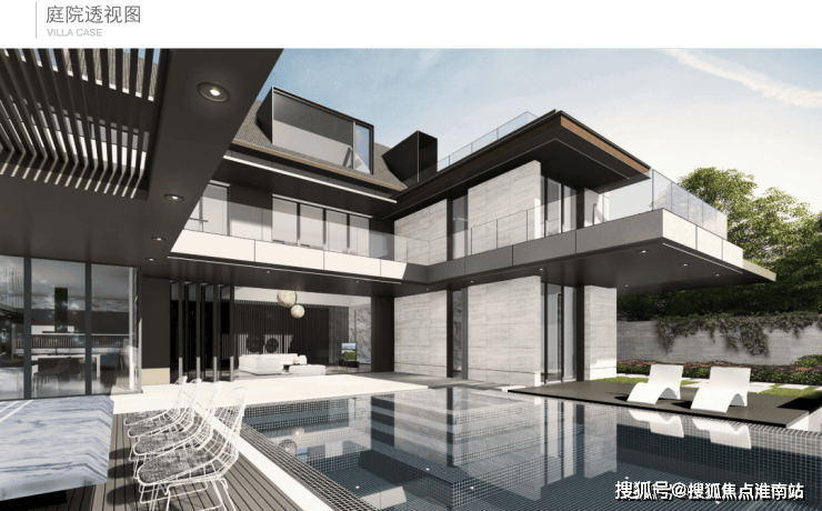 泳池里两旁的庭院,可以与亲朋好友相聚。