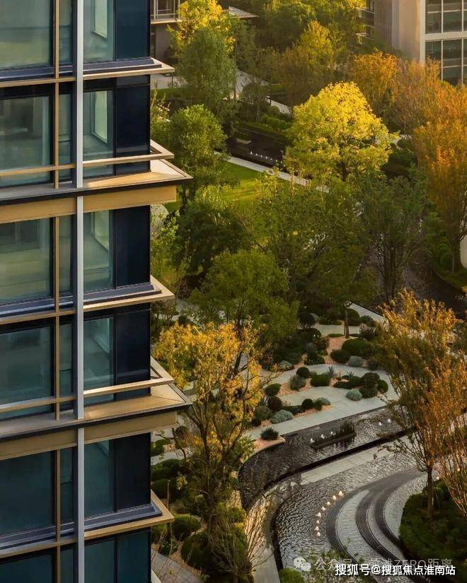 三重景观层次搭配 4:6 黄金配比的常落乔木, 春见新绿、秋赏红叶 ,让四季流转都有诗意相伴