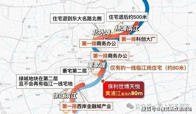 保利世博天悦是近乎绝版的滨江首排,直线距离黄浦江只有约80 米,与江几乎“触手可及”