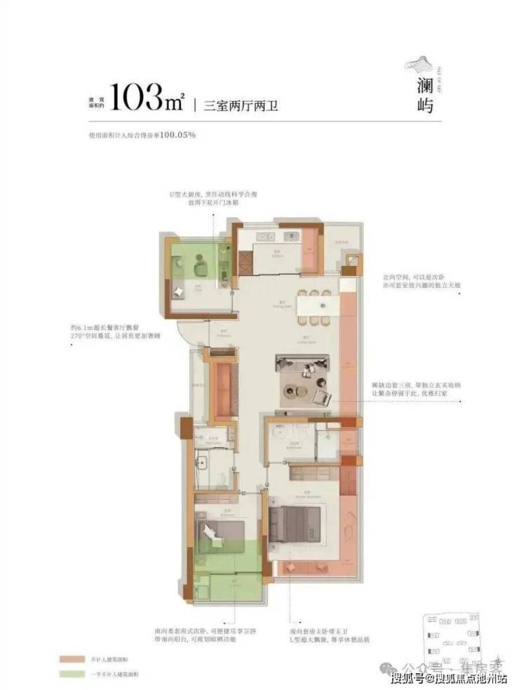建面约103方户型: