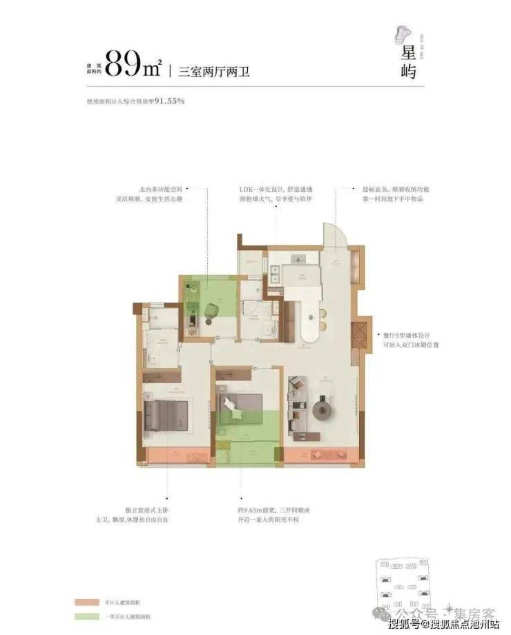 建面约89方户型: