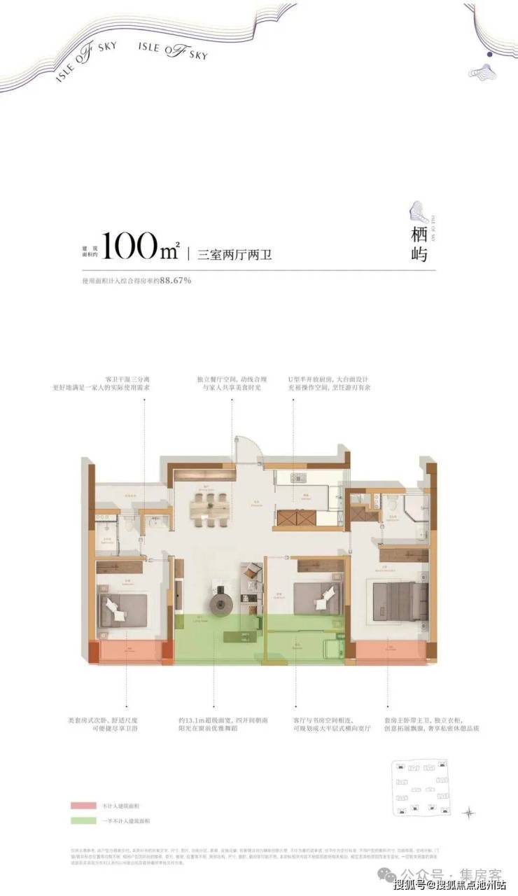 建面约100方户型: