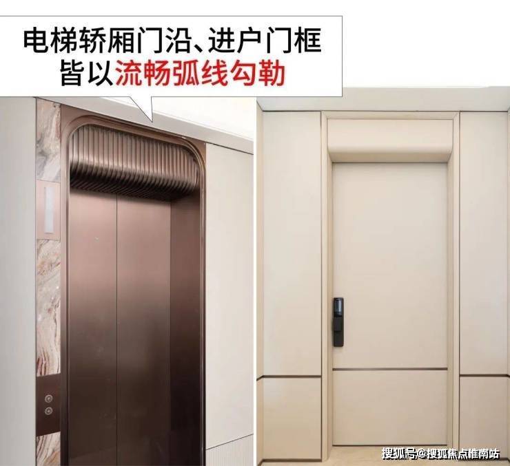 电梯轿厢门沿、进户门框皆以流畅 弧线勾勒 ,为业主日常等电梯和归家增添几分优雅。