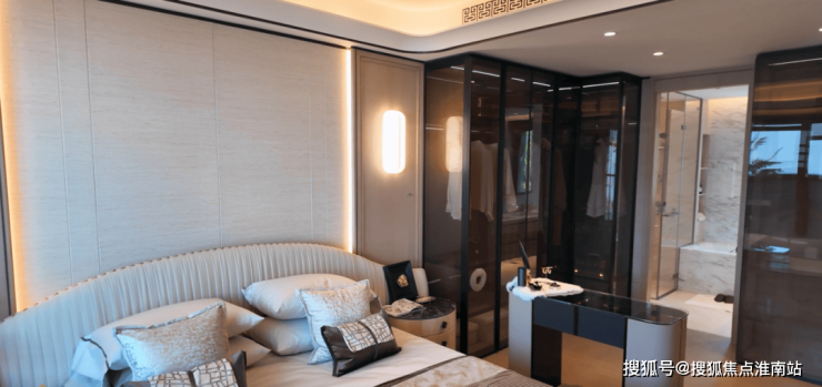 上叠是交付版本样板间,现场看交付标准确实可以,大金中央空调、霍尼韦尔新风、威能地段,很多木饰面、岩板、收纳其实都做好了,厨房是美诺五件套厨电,德国柏丽门板,卫生间是全套唯宝品牌卫浴。