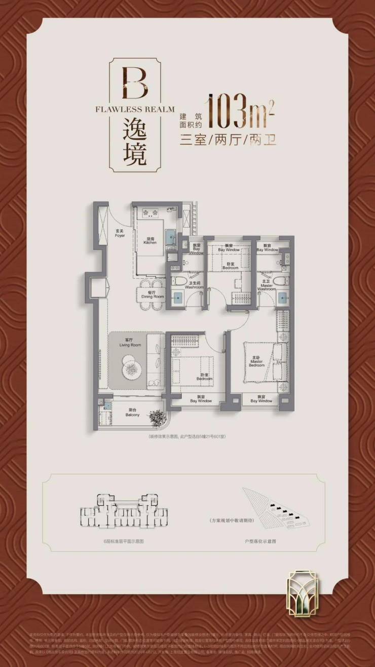 103/105㎡ 3 房 2 厅 2 卫:LDKB 一体化、三阳台、双卫设计;单价 6.5-6.8 万 /㎡,总价 650-740 万