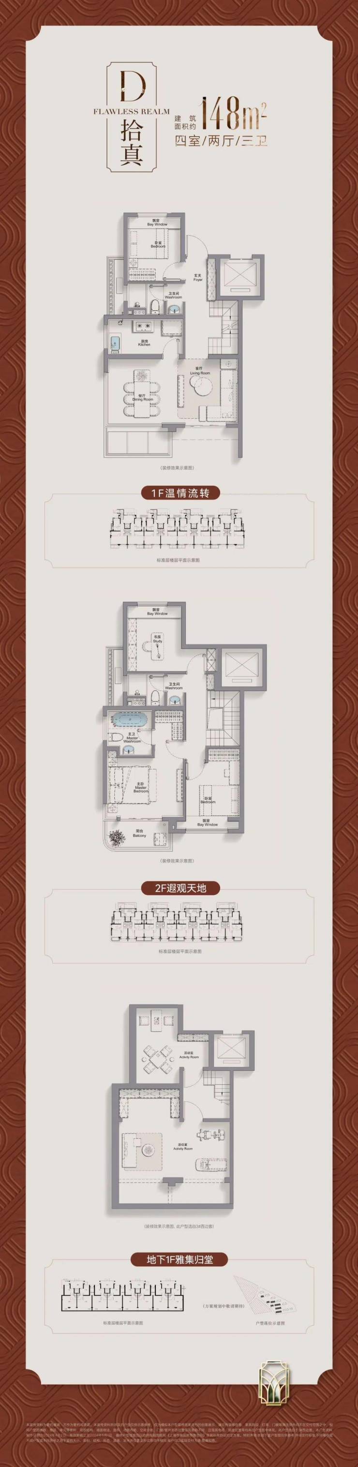 152㎡ 下叠 4 房 2 厅 3 卫:私家庭院、5.5m 挑高地下室;单价 7.7-7.9 万 /㎡,总价 1200-1500 万