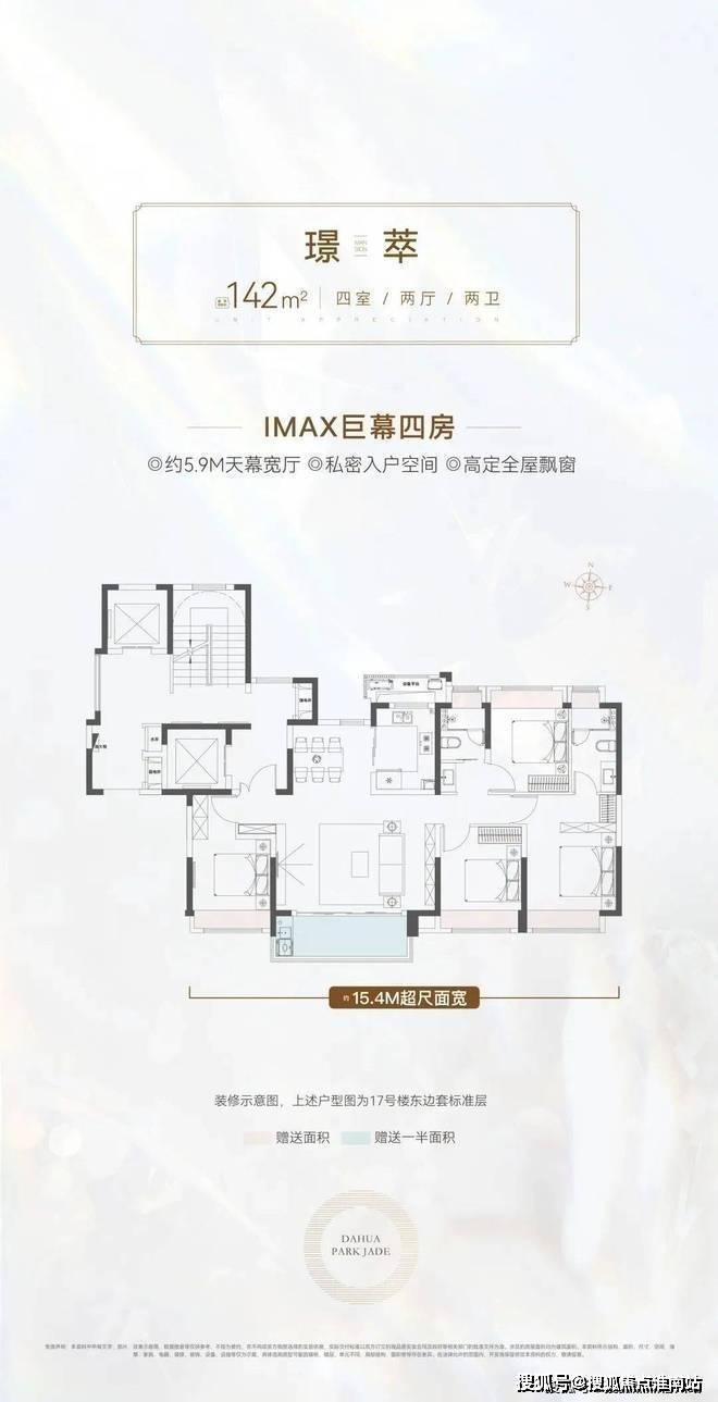 真正一步到位的改善型4房产品,大横厅的设计, 四开间朝南+大横厅,约15.4米的南向面宽堪比别墅。