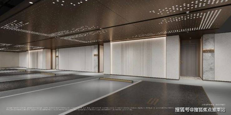项目地下精装车库非常奢雅,汽车坡道采用氛围照明,缓解光环境变化,搭配星空顶造型彰显独特。
