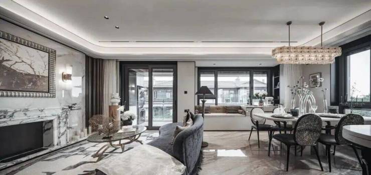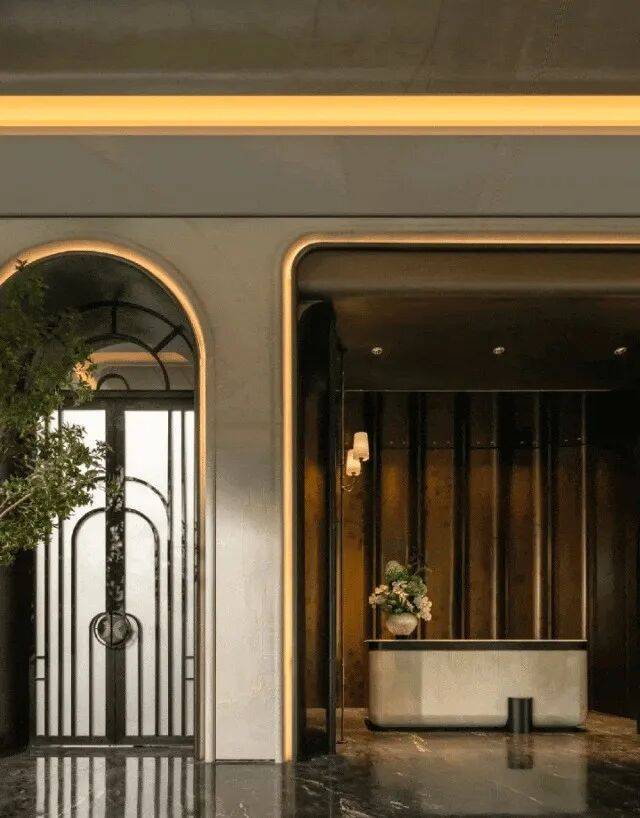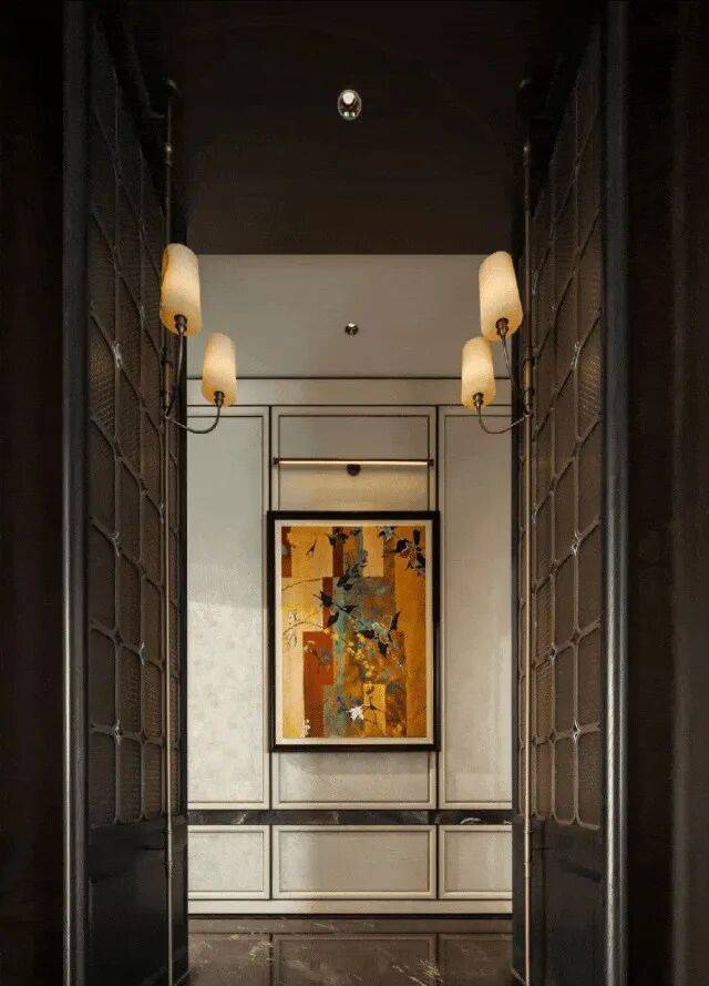 门厅,作为建筑空间的第一重呼吸,在摩登且包容的主基调上,汲取西方古典园林的轴线秩序感,同时在细节处融入了东方留白的智慧,并以黄金比例分割的线条韵律与考究材质的肌理对话,让这个过渡空间成为兼具当代美学精神与人文温度的仪式场域,让居者于此处完成从外部世界到内心居所的优雅转译。