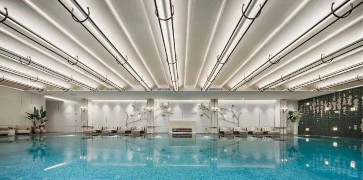 松弛感生活的下一章,在水中感受空间的张力与运动的活力。打破对泳池空间封闭的固有印象,室内空间与中庭景观于此无缝衔接,光与影的交织、景与水的共融,一场水能量的流动与循环于此恣意上演。