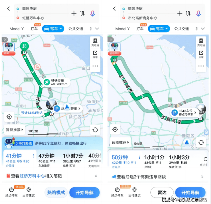 我导航到了虹桥万科中心和市北高新,大家可以参考路线,胜在红绿灯少,高速转高架,通勤效率高!