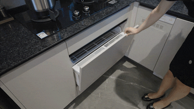 橱柜45度倾斜“轻松抽”设计,无需蹲下就可轻松拿取餐具、调料。这在上海我也几乎没见过。