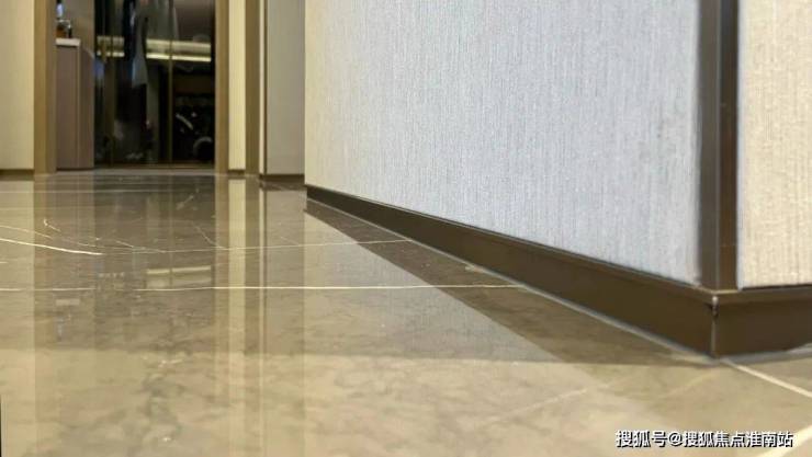 把视线下移,项目把都踢脚线都“藏”入墙面,内凹入墙式的做法,灰尘就失去了积攒的地方;并通过金属饰条装饰,更显纤细、美观。