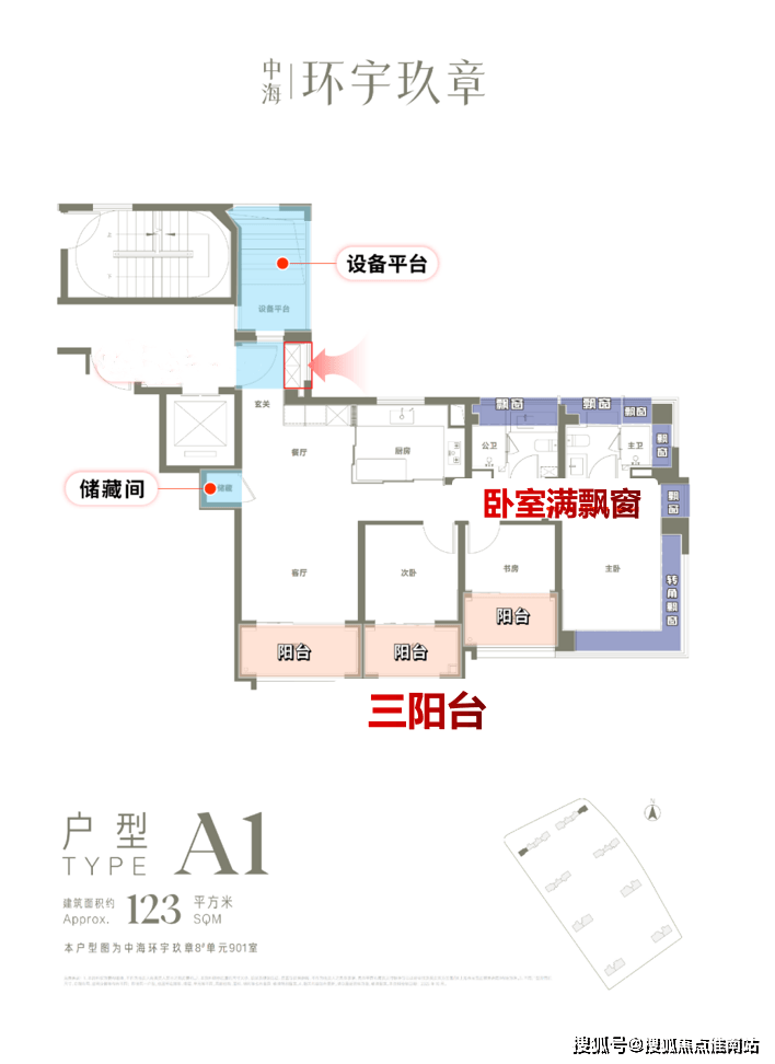 它通过精心设计的南向三个阳台和全屋的飘窗,巧妙地多出了约几十平的面积。这意味着,你花的123㎡的钱,享受的是接近140㎡左右的居住体验。