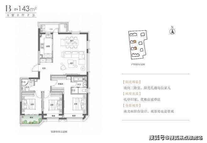 超配尺度:北阳台空间可作为家政空间使用,南向全明三卧室,每一位家庭成员都能实现阳光平权,通透舒适。