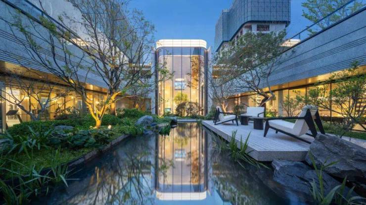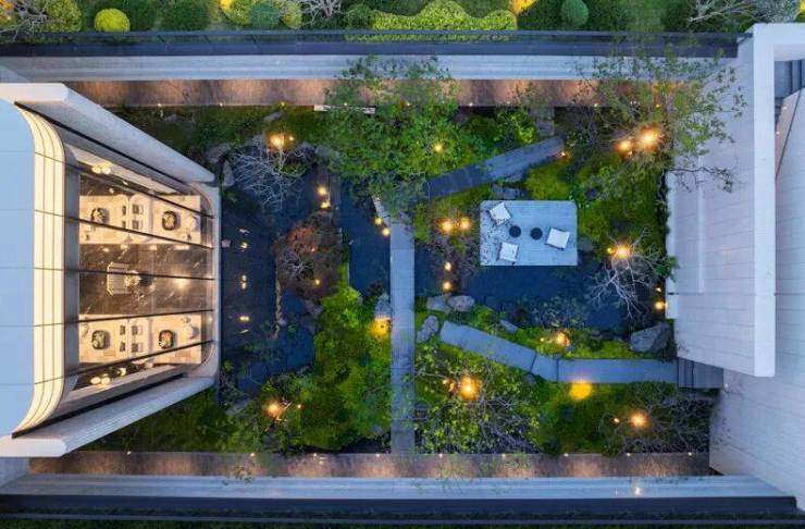 高达约8-12 米乌桕遮去建筑尖角,秋日娜塔栎的金红叶片添满暖意,林下会客厅随时满足社交、亲子小聚,轻松解锁舒适日常。