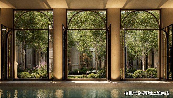 上海闵行象屿天誉兰香营销中心热线4008818994(官方预约热线)花园泳池波光潋滟处,拱形门窗外花影摇曳,一池春水将四季芳菲溶成流动的油画。