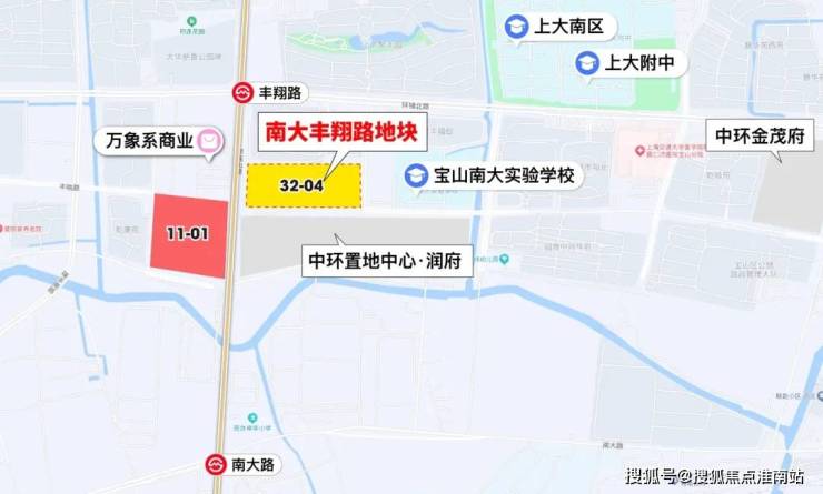 10月25日,2024年第六批次土拍,华润置地以底价约46.11亿拿下宝山区大场镇W12-1301单元32-04地块、11-01地块,即宝山南大丰翔路TOD地块二期中环置地中心·望雲。比当前润府的3幅宅地位置上更靠近地铁站!