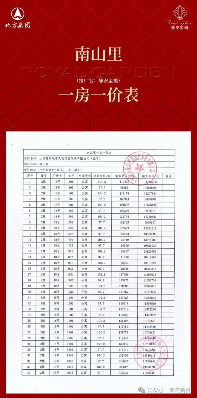 项目一房一价表