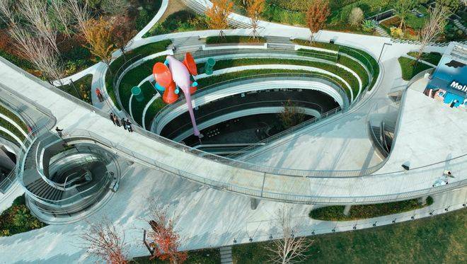 整个景观设计,按照“翡光礼境”的概念,不是硬生生地塞进社区中,而是做到了与水景、雕塑、绿植一起,体现未来住区的海派生活气质。