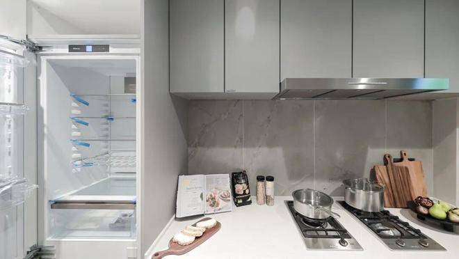 厨具方面,油烟机、灶具、洗碗机、烤箱、甚至一般不作为交付的冰箱,均采用了国际知名品牌——美诺(或同等档次),这样的五件套配置放眼全市豪宅都非常罕见。
