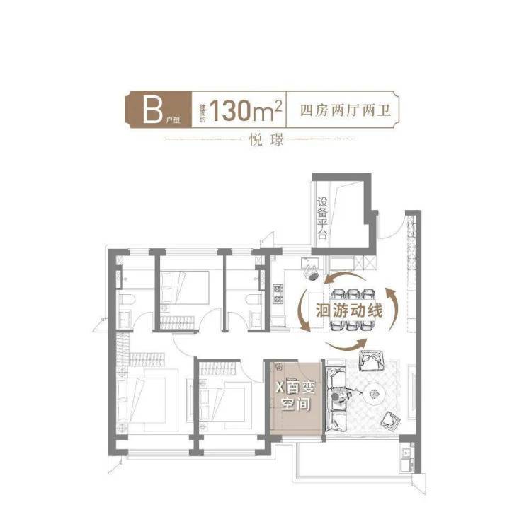 全景面宽+无界通厅+高附加值+收纳天花板,130㎡的面积直逼140㎡的尺度感!