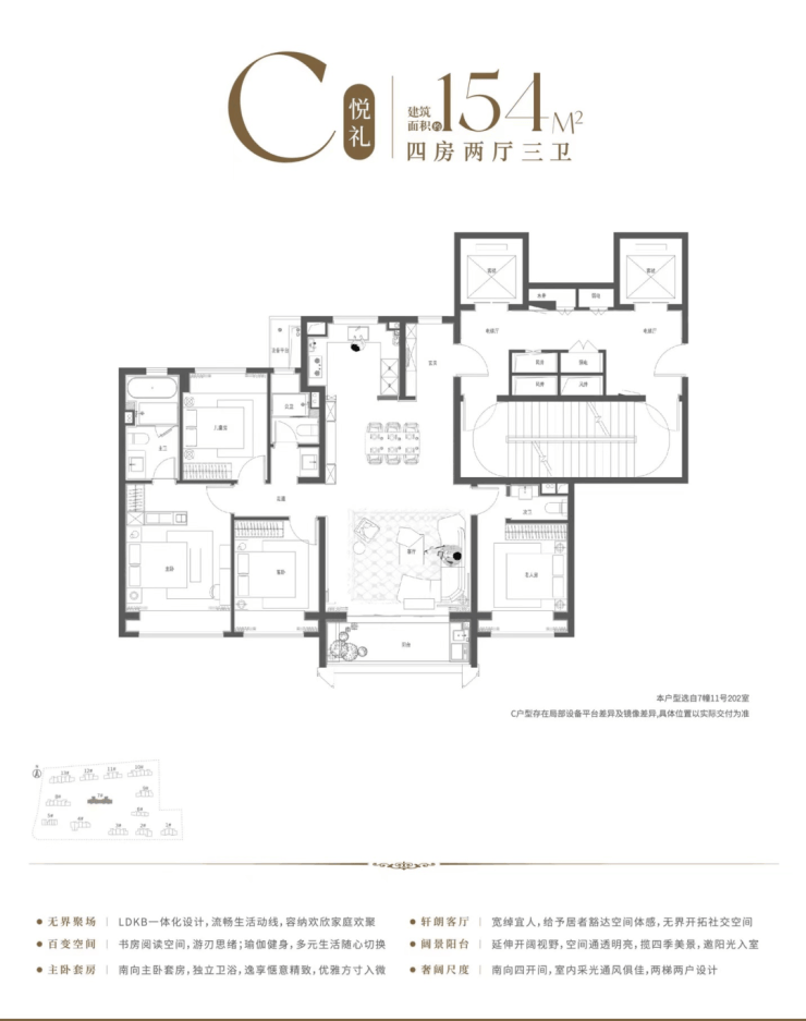 154㎡ 4 室 2 厅 3 卫(楼王)