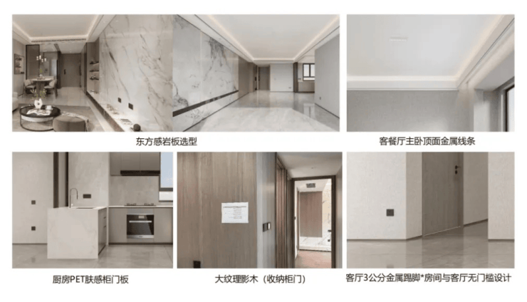 室内采用影木饰面,拼花纹路清晰、完整,显得非常雅致;包括精装整体配色主打温润宜人的东方色彩,窗、门主打青灰色,一股轻奢的中国风!