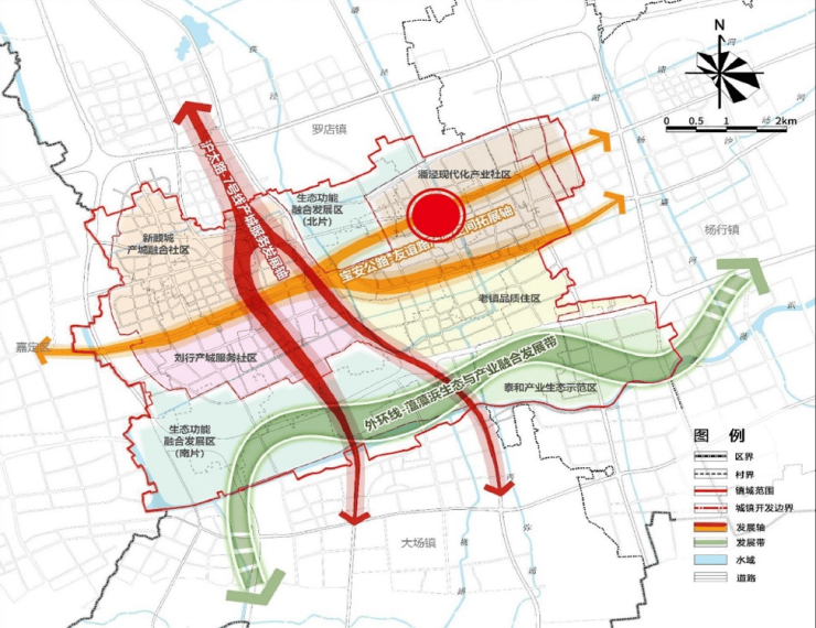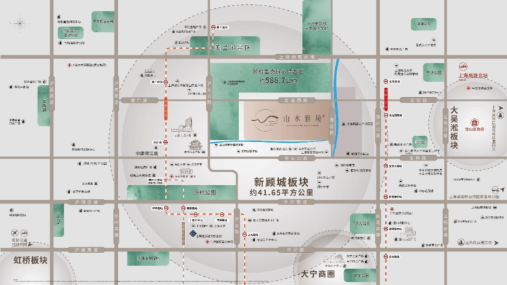 在宝山主城发展链上,新顾城位于沪太路城镇发展轴和宝杨路-宝安公路功能发展轴的轴心,东西向链接嘉定远香湖中央活动区、吴淞创新城,南北向联动南大智慧城,成为北上海产业升级转型的产城高地。