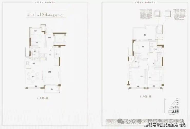建面约139㎡上叠户型,三层是会客区,四层是居住区,阳台+露台+多个飘窗设计,附加空间非常大,在别墅类产品中实属罕见!