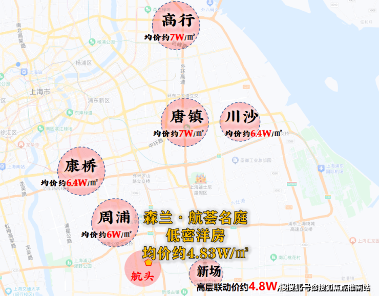 对于浦西来说“4”字头新盘不足为奇,可在浦东就显得尤为珍贵,板块均价基本需要6-7万/㎡左右,即便是同维度新场,高层产品的新房联动价都已经4.8万/㎡。