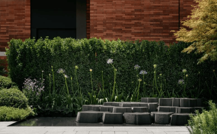 这里不仅是绿意盎然的花园,也是雅致的庭院;是令人瞩目的景观焦点,更是活力十足的社交中心。源自艺术家沈烈毅的作品《甘霖》屹立于此,流水潺潺、雕塑灵动,打破空间隔阂,与自然和谐共生。而在这片独特的中庭区域,一对被称为“夫妻树”的乌桕静静伫立,彼此守望、根脉相依,假以时日,待树冠生长相连,这两棵乌桕树将以更亲密的姿态,为这片空间增添一抹浪漫而温馨的色彩。