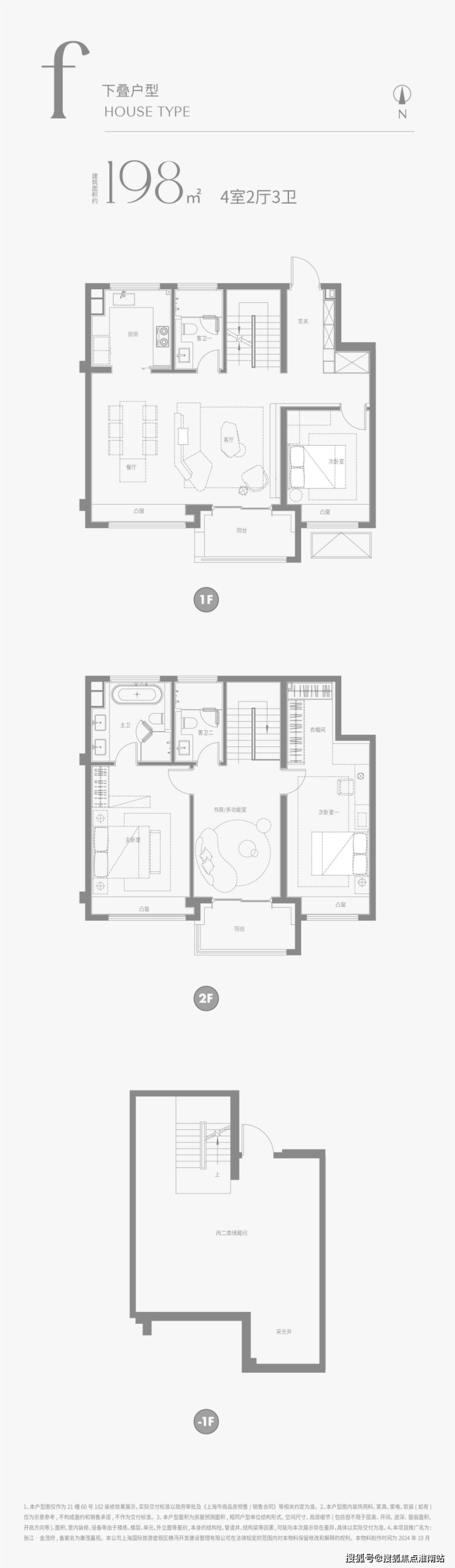 建面约198m²下叠户型图: