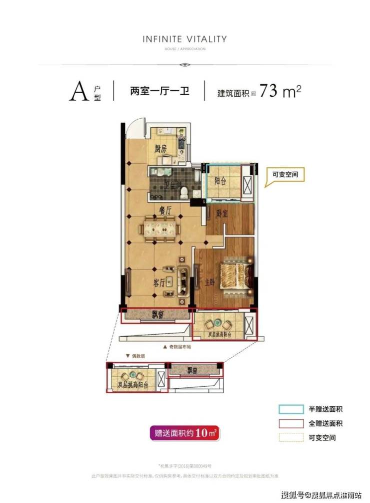 【73㎡户型】对于小户型来说,73㎡的户型,也做到了两室两厅一厨一卫,其中它的阳台是云锦城特有的“双层挑高”。相比于“一步到位”的购房者,这类户型更适合刚需家庭。