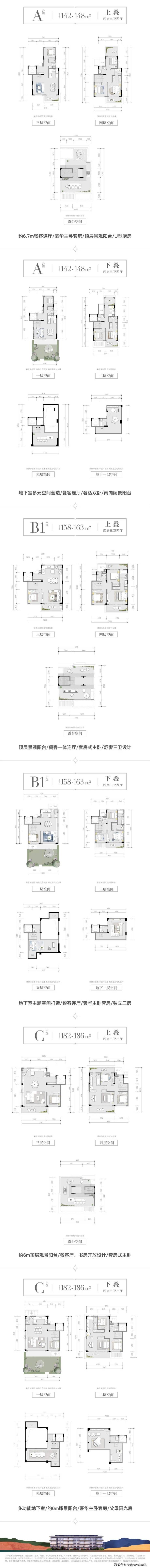 以C户型下叠为例,约18.6m南向大面宽(双层),无界风景延伸入室;270°环幕采光,尽情沐浴暖阳。在珍存的低密土地上,华夏·溪揽星院以上下双叠设计,上叠露台为伴,下叠庭院相接,双层地下室空间规划,营造更为纯粹的墅居生活享受。