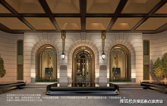 社区主入口复刻华尔道夫酒店仪式,严谨的柱廊序列在米色石材上投下充满韵律的光影,穹顶与拱券,瞬间将归家情绪升华至艺术层面.