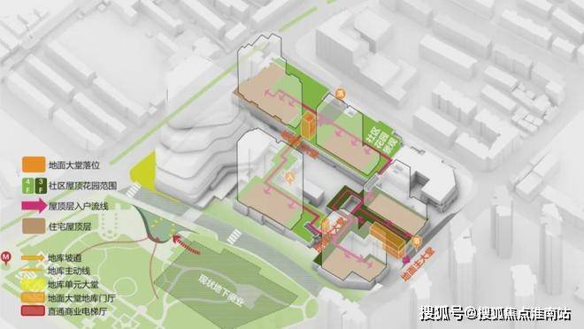 业主可通过任意一个归家入口,就近抵达住宅平台后,通过高线公园步行至住处所在楼栋。