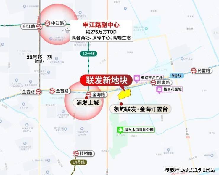 项目是三轨交环绕的真地铁盘,项目距离9/12号线金海路站约800米,另外还有14号线桂桥路站。