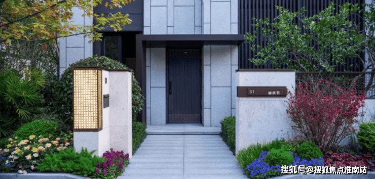 选用温润典雅的天然石材作为基底,中轴对称式布局彰显高门气魄,水景内涌泉汨汨且搭配泛星灯光,转角处的精美艺术景墙,邂逅尊崇归家仪式感。