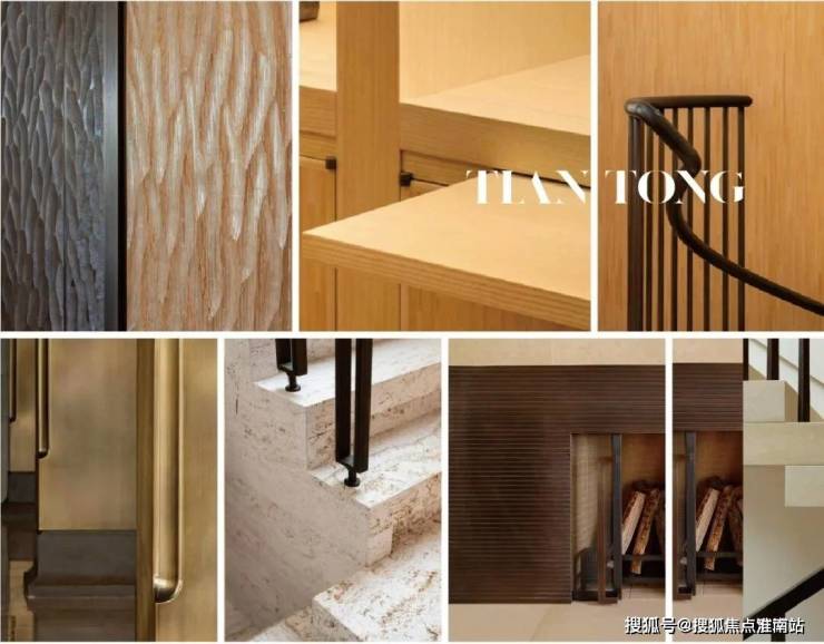 硬装上以木饰面和米色石材做结合,物料原始肌理感,表达经历时间后的沧桑痕迹。大理石地面镶嵌精致金属条,保留材质的原始感,木饰面配柔和灯光,调和出安宁澄澈的归家氛围。